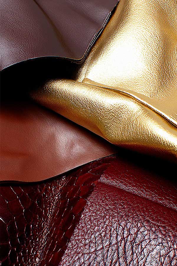 - Italie, pour ses cuirs aux teintes riches, très pigmentées, et ses finitions métallisées haut de gamme.