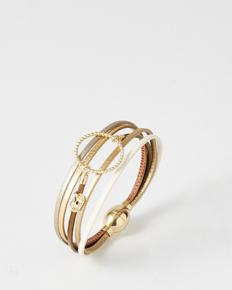 Le best seller Annabelle My Way, un bracelet avec ses 5 liens de cuir, son fermoir aimanté et son anneau travaillé.