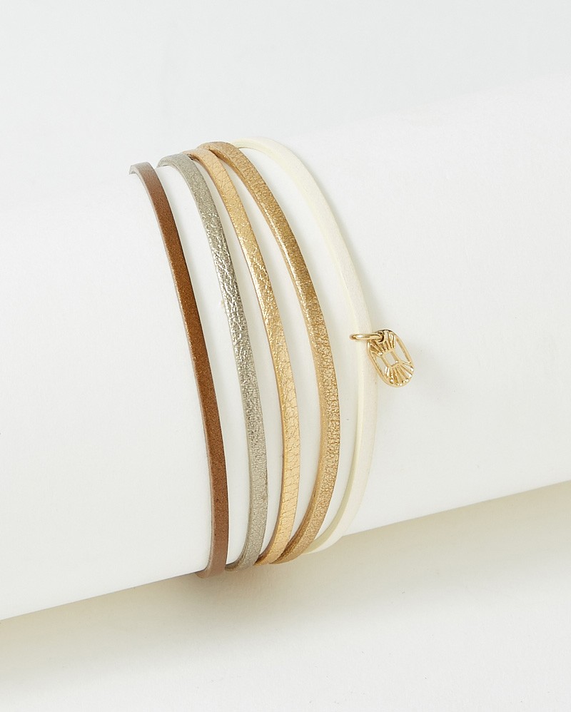 Composé de 5 liens en cuir véritable, dans des teintes dorés et métallisées. Chic et moderne, il s' adapte à toutes vos tenues.