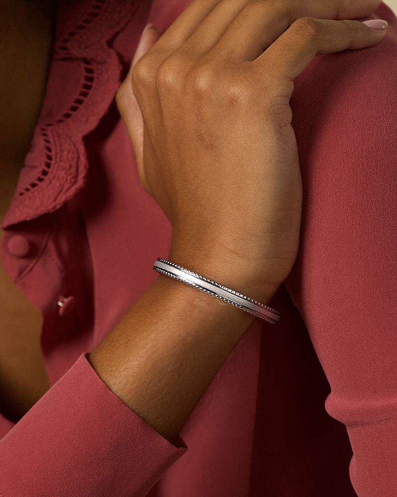 Le Jonc Tuesday Argent Blanc est l’allié parfait pour illuminer votre poignet avec subtilité et affirmer un style chic et moderne.