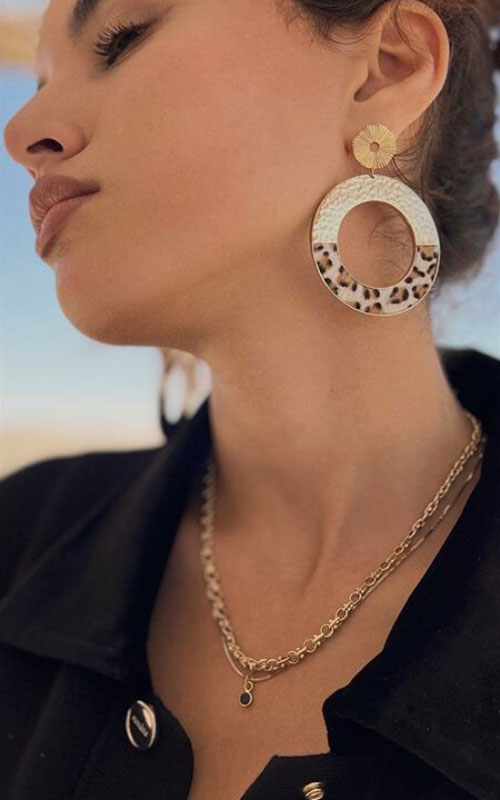 - Pour une ambiance bord de mer, misez sur des bijoux aux tons naturels comme le Sable Léo, le Metallic Gold ou le Cuivre Irisé. Ces nuances s'accordent parfaitement avec des vêtements en lin, un panier en osier et une peau dorée par le soleil.