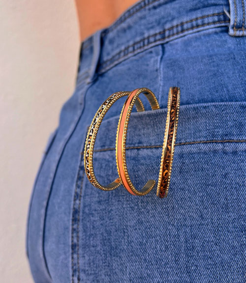 Osez les superpositions. Mixez plusieurs joncs fins sur un même poignet pour créer un effet lumineux et graphique. Variez les textures : cuir lisse, imprimé, chaîne, et jouez sur les finitions — dorées mates, brillantes ou brossées — pour une composition qui vous ressemble. Chez Flowersforzoé, nous croyons en l'art d'accessoiriser sans surcharger. Nos bijoux sont conçus pour accompagner chaque moment de votre été : du bureau à la terrasse, de la plage à une soirée habillée. Légers, confortables et durables, ils se portent comme une seconde peau, soulignant votre personnalité avec élégance et subtilité.