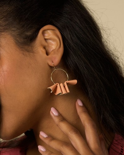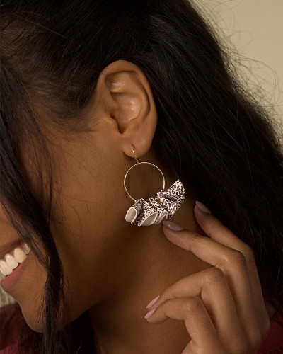 Les boucles d'oreilles Wednesday Bloom, de grandes créoles composées d'une pièce de cuir centrale et d'une finition en bouterolles de part et d'autre.