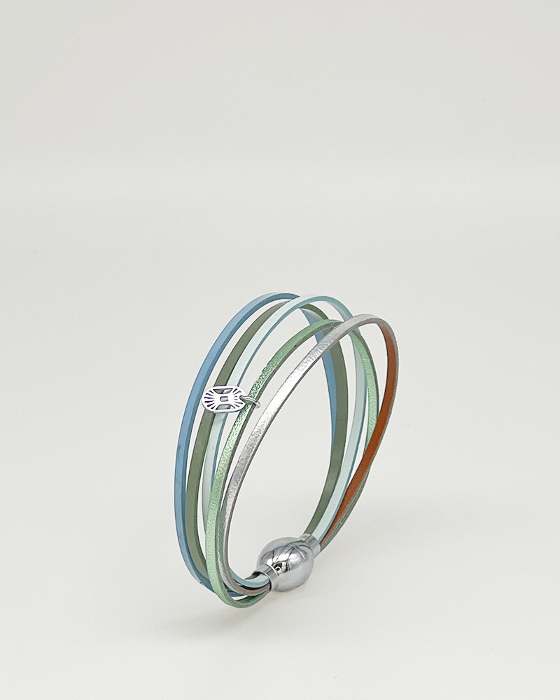 Équipé d’un fermoir aimanté argenté, le bracelet se ferme en un geste tout en restant confortable au quotidien. Le bracelet Artiste Lagoon est idéal pour celles qui aiment les bijoux en cuir chics, colorés et faciles à assortir, capables d’illuminer une tenue avec une touche moderne et raffinée.
