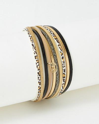 Le Bracelet Clover Mettalic Gold joue sur l’harmonie parfaite entre cuir et métal.