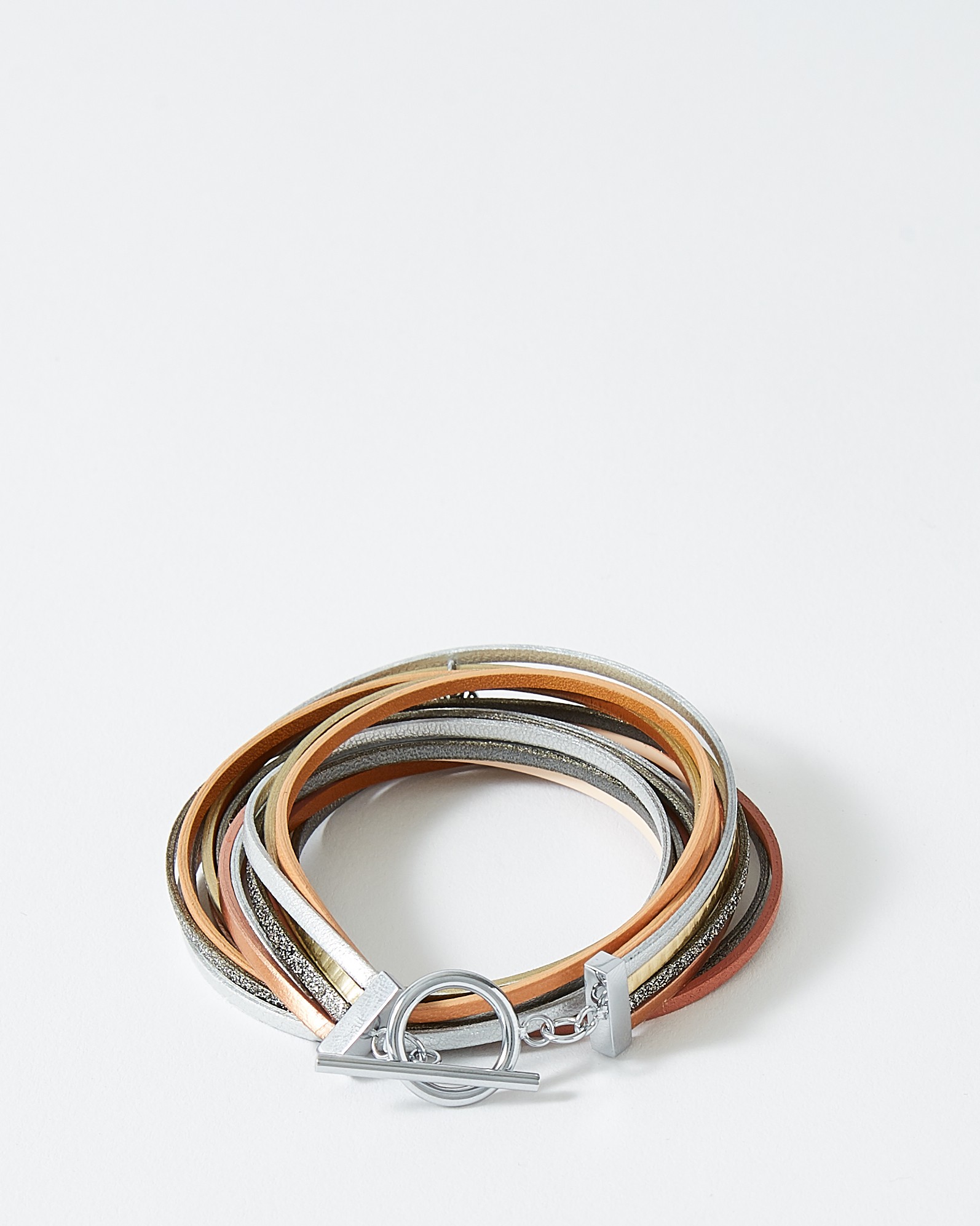 Conçu avec 8 liens de cuir , il s’enroule deux fois autour du poignet, offrant un effet de superposition sophistiqué et élégant.