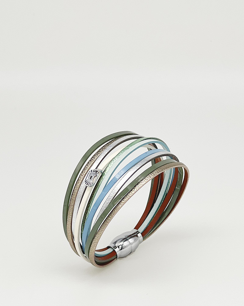 Équipé d’un fermoir aimanté argenté, le bracelet se ferme en un geste tout en restant confortable au quotidien. Le bracelet Malicieux Lagoon est idéal pour celles qui aiment les bijoux en cuir chics, colorés et faciles à assortir, capables d’illuminer une tenue avec une touche moderne et raffinée.
