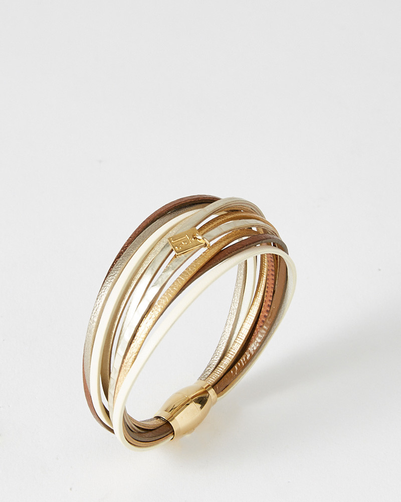 Conçu avec 10 liens de cuir pour un effet volumineux et moderne. Mélange raffiné de cuirs métallisés et naturels.