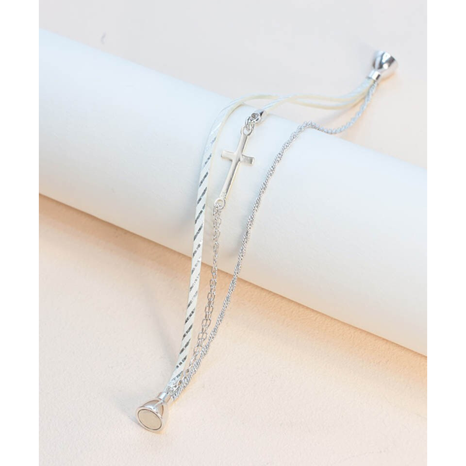 Découvrez notre bracelet Phoenix composé de deux liens en cuir, d'une chaîne et d'un motif croix. Osez un look sortant de l'ordinaire !