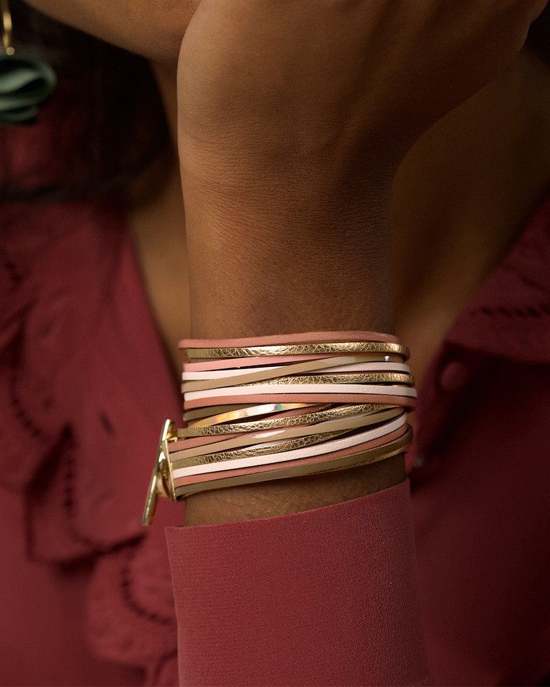 Le bracelet Starsky Let It Be combine 12 liens de cuir aux nuances colorées pour un double tour autour du poignet et un effet accumulation marqué.