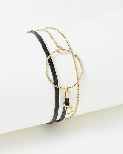 Découvrez le jonc Gilda, un petit jonc glamour avec une pièce de cuir véritable. Idéal pour une accumulation de bracelets.